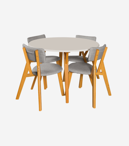 Conjunto Sala De Jantar 4 Cadeiras Mesa Redonda 110cm