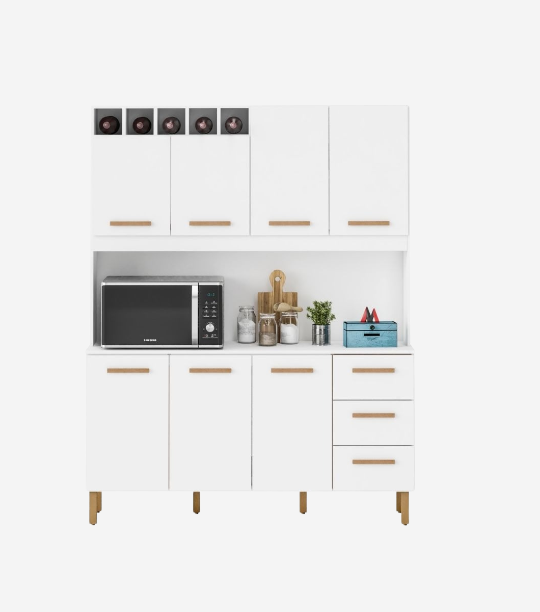 Muitas cozinhas sofrem com a falta de lugar para guardar utensílios, panelas e mantimentos. Esse armário foi desenvolvido para resolver esse problema, oferecendo espaço amplo e bem distribuído. Além disso, seu design moderno valoriza a decoração e deixa o ambiente muito mais agradável.