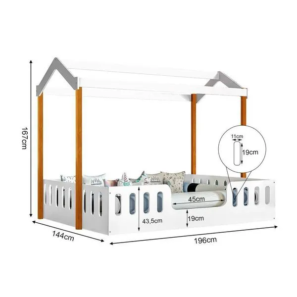 Cama Casal Infantil Casinha Montessoriana ágatha – Branco/mel – Cor: Branco