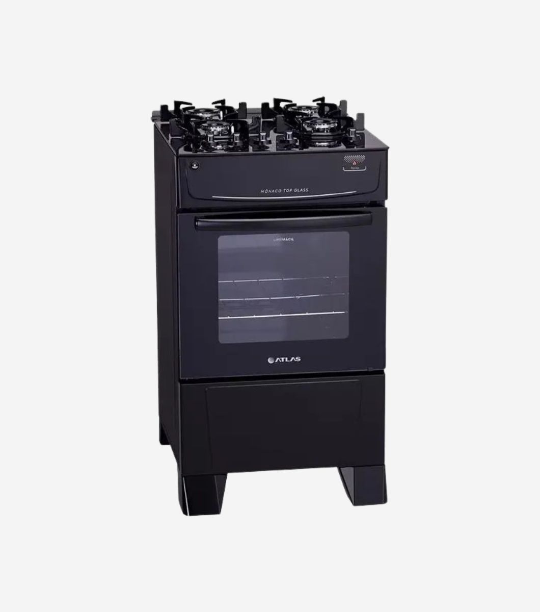 Fogão Atlas 4 Bocas Mônaco Top Glass com Mesa de Vidro e Acendimento Automático Bivolt – Preto
