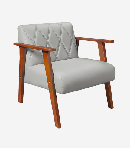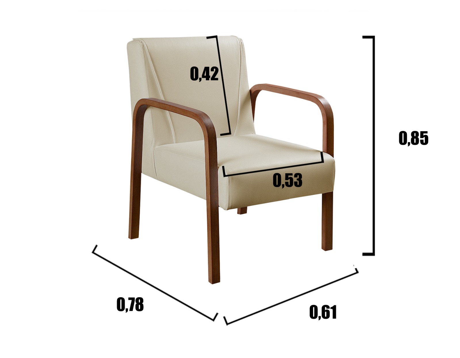 Poltrona Decorativa Anita Braço Madeira – Corino Bege