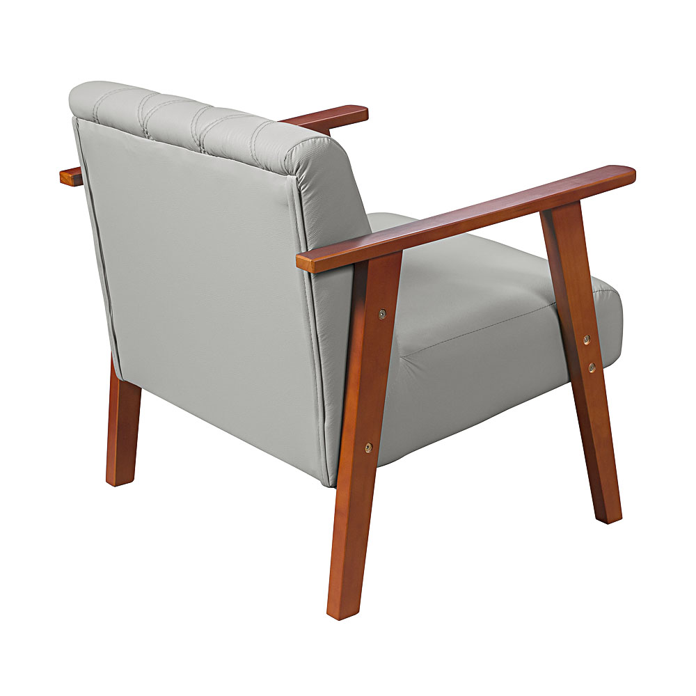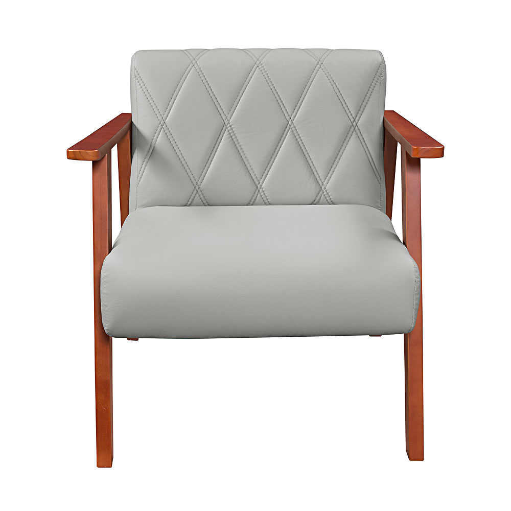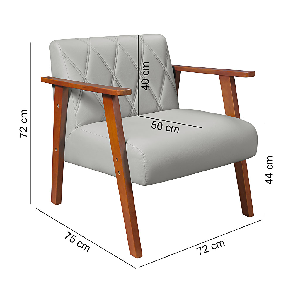 Poltrona Decorativa Anita Braço Madeira – Corino Bege